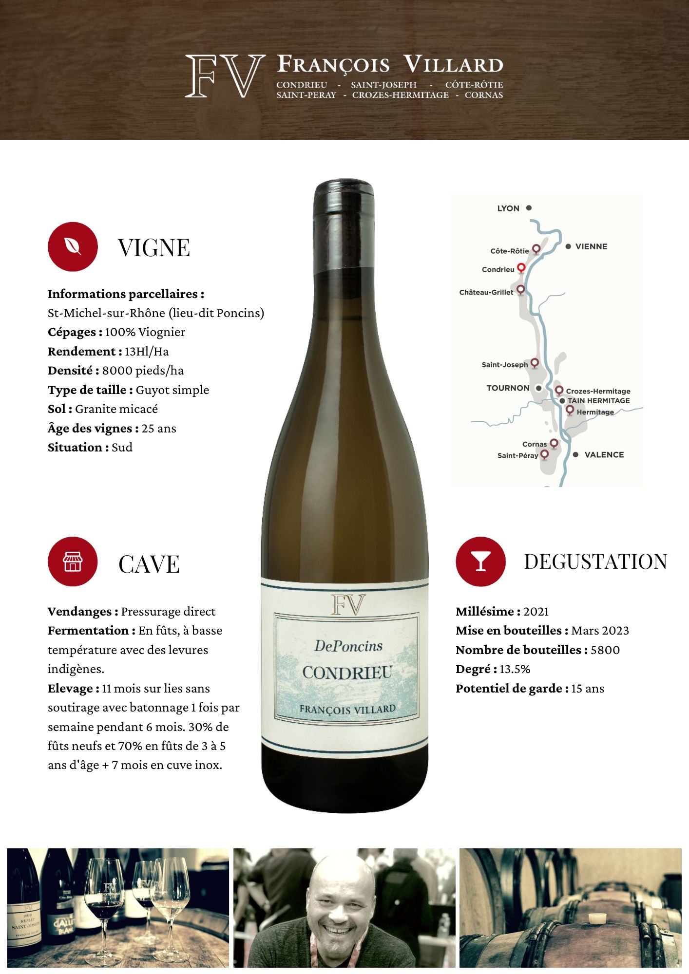 • Élevage : 11 mois en fûts (30% de fûts neufs) sur lies sans soutirage + 7 mois en cuve inox